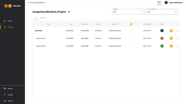 스퀴즈비츠 팀에서 실제로 여러 고객사들의 모델을 경량화하는 과정에서 반복되는 작업과 공통적으로 적용될 수 있는 기술들이 있음을 확인했고, OwLite는 스퀴즈비츠의 경량화 엔지니어가 더 효율적으로 모델을 경량화할 수 있도록 돕는 도구라는 컨셉으로 시작되었습니다.