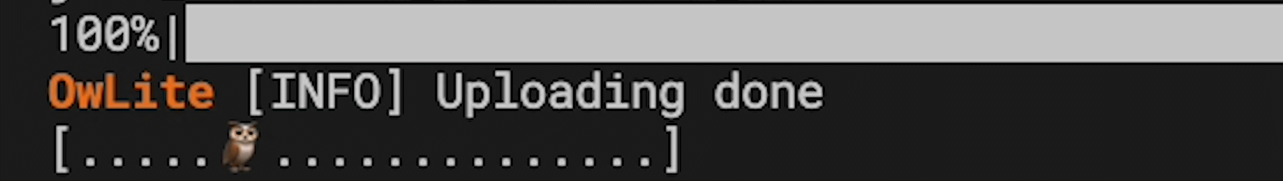 정보성 메세지는 OwLite 서비스나 함수의 각 부분이 어떤 동작을 하는지, 그래서 현재 서비스가 어떤 상태이고 다음 상태는 무엇인지 알려줍니다. 무언가를 로딩하거나 기다리는 상황에서도 멈춰져 있지 않다는 정보를 제공하기 위해 CLI 상에서 동적인 요소를 추가했습니다.