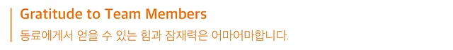 앞서 소개한 치열한 열정도, 추진력도, 그리고 솔직한 소통도 모두 잘 이루어지기 위해서는 한 가지 절대 빠져서는 안 될 요소가 있습니다. 혼자가 아닌 팀이기에 존재하는 것, 바로 동료입니다. 스퀴즈비츠는 핵심가치에 [소통]과 [행복]이 있음에도 불구하고, 팀원에 대한 [감사]를 별도의 가치로 구분합니다. 그만큼 사소한 것에도 감사할 줄 아는 마음에서 진정한 팀워크가 비롯된다는 생각입니다. 단지 협업의 대상에서 그치는 것이 아니라, 하루의 대부분을 함께 보내며 동고동락하는 팀원들에게 진심으로 고마움을 느끼는 것이 스퀴즈비츠인으로서 반드시 갖추어야 할 마지막 마인드셋입니다.