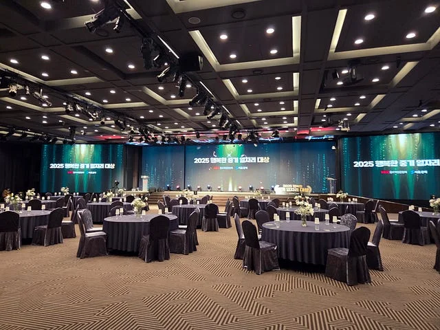 시상식의 시작과 수상의 순간에 주최 측에서 만들어주신 각 기업들의 성과 홍보 영상이 흘러나왔는데요. 자주 보던 저희 팀원들의 단체 사진과 각종 행사 사진들을 그렇게 큰 컨벤션 홀의 거대한 스크린으로 마주하니 너무나 감회가 새로웠습니다. 비교적 업력도 길고 규모도 큰 기업들 사이에 무려 [중소벤처기업부 장관상]의 타이틀을 걸고 우리 팀원들의 모습이 펼쳐진다는 것이 정말 벅찬 순간이었습니다. 특히 실무자로서 지난 과정들을 직접 진행해 온 저로서는 장관상 그 자체보다 더 큰 선물을 받은 기분이었고, 평생 잊히지 않을 최고의 순간으로 기억될 것 같습니다. 😊