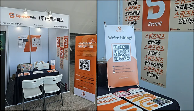 AI 산업이 나날이 발전하고 경량화의 필요성이 높아지는 만큼 스퀴즈비츠 채용에도 많은 관심이 쏠리고 있습니다. 소중한 관심을 가져주신 분들께 최대한 정확하고 자세한 정보를 드리기 위해 채용 페이지와 블로그 글에도 공을 들이려 노력하고 있어요. 오프라인 및 일대일로도 더 많은 이야기를 들려드리고자, 다양한 채용 관련 행사에도 기회가 생길 때마다 적극적으로 참여하고 있습니다. 😉 이 컨텐츠가 채용 행사에 참여하실 취업/이직 준비 지원자님들께 조금이나마 도움이 되길 바라며, 추후 스퀴즈비츠가 참가할 행사에서도 꼭 만나 뵐 수 있기를 기대할게요!