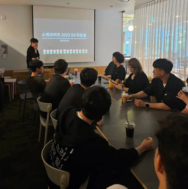 스퀴즈비츠는 지난 6월 30일, 타운홀 미팅을 통해 상반기를 되돌아보고 하반기를 계획하는 자리를 마련했습니다. 한 명도 휴가자나 재택근무자 없이 모두가 상반기 타운홀에 참석하여 자리를 빛내주셨어요. 🎊